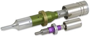 Los amplificadores pueden aumentar o disminuir la magnitud de un sonotrodo.Los amplificadores son de colores que representan los rangos de ganancia. nota: los amplificadores de titanio tienen un código de color en el anillo de sujeción. Contamos con amplificadores de 15,20, 30 y 40 Khz